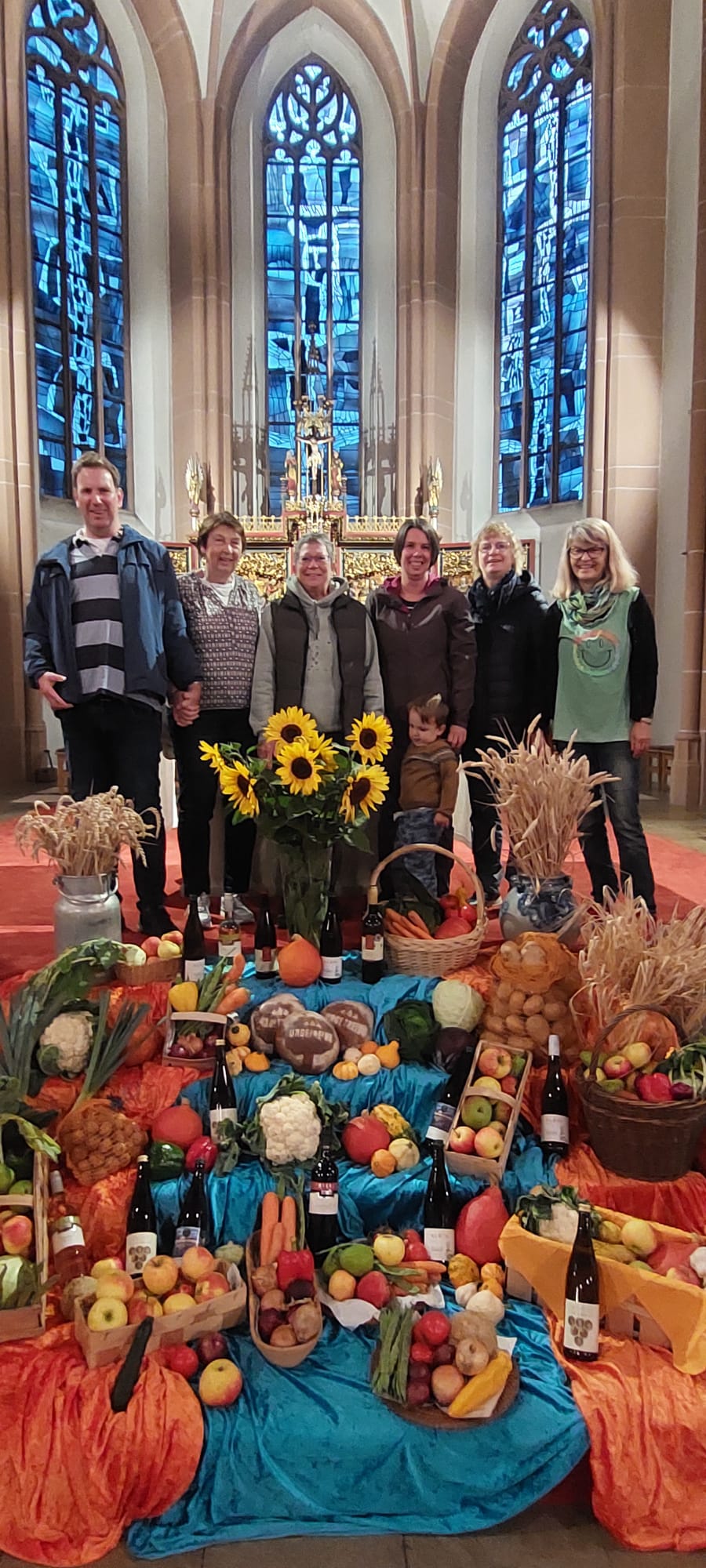 Natürlich haben wieder fleißige LandFrauen Gaben in Hechtsheim von Spendern/innen eingesammelt und dazugekauft, um die Hechtsheimer Kirchen zu versorgen. Den Altar in der Evangelischen Kirche schmückte Herr Maus, in den katholischen Kirchen wird der Altar von unserem Vorstand und Mathias geschmückt.