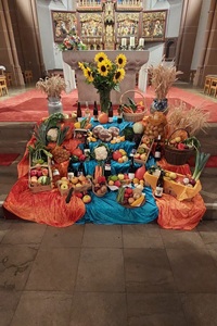 Die Gaben wurden sowohl an die beiden ev. Kirchen von Hechtsheim weitergegeben, als auch an die kath. Kirchengemeinde St. Pankratius. Hier legten die LandFrauen wie immer selbst Hand an, um den Altarraum mit den Gaben zu schmücken.
